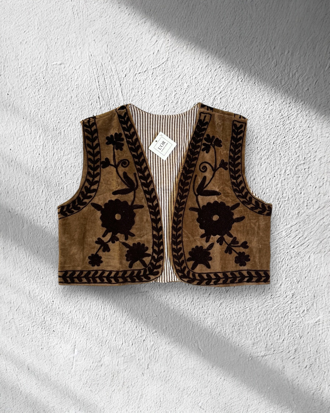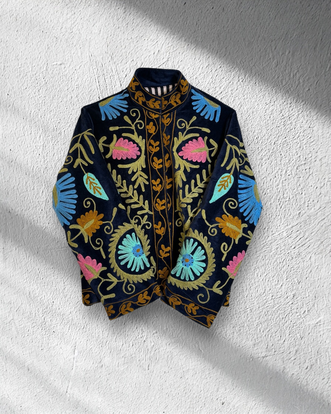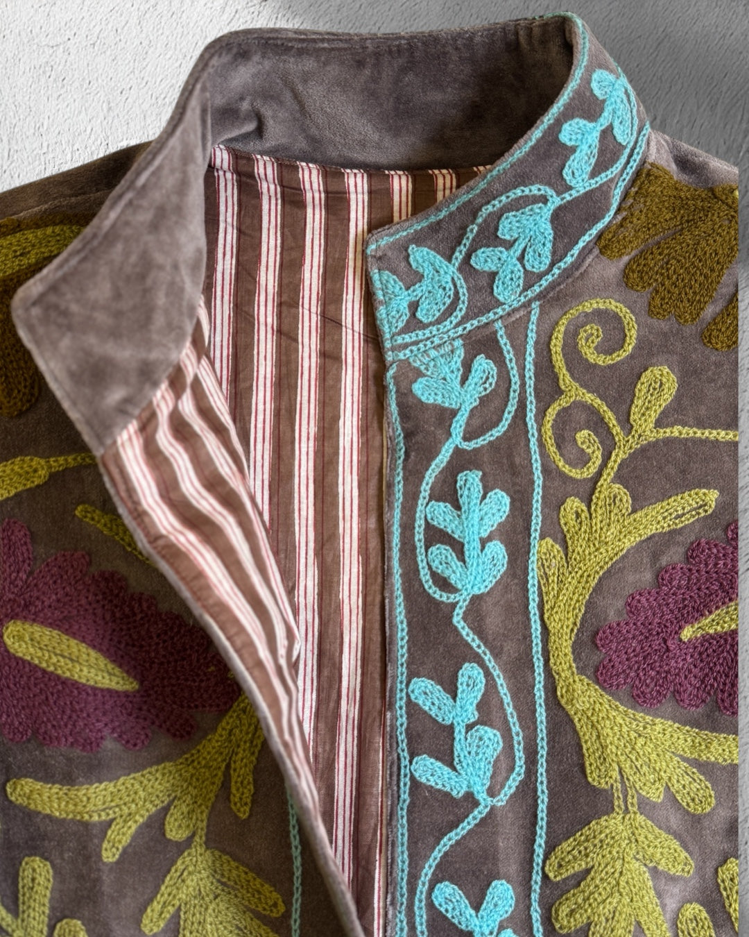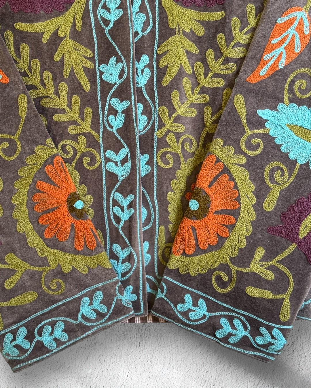 Un accessorio versatile che unisce artigianalità e colore. Queste pochette in velluto, interamente ricamate a mano con motivi floreali e geometrici, sono rifinite da una nappina in filo per un tocco boho-chic.