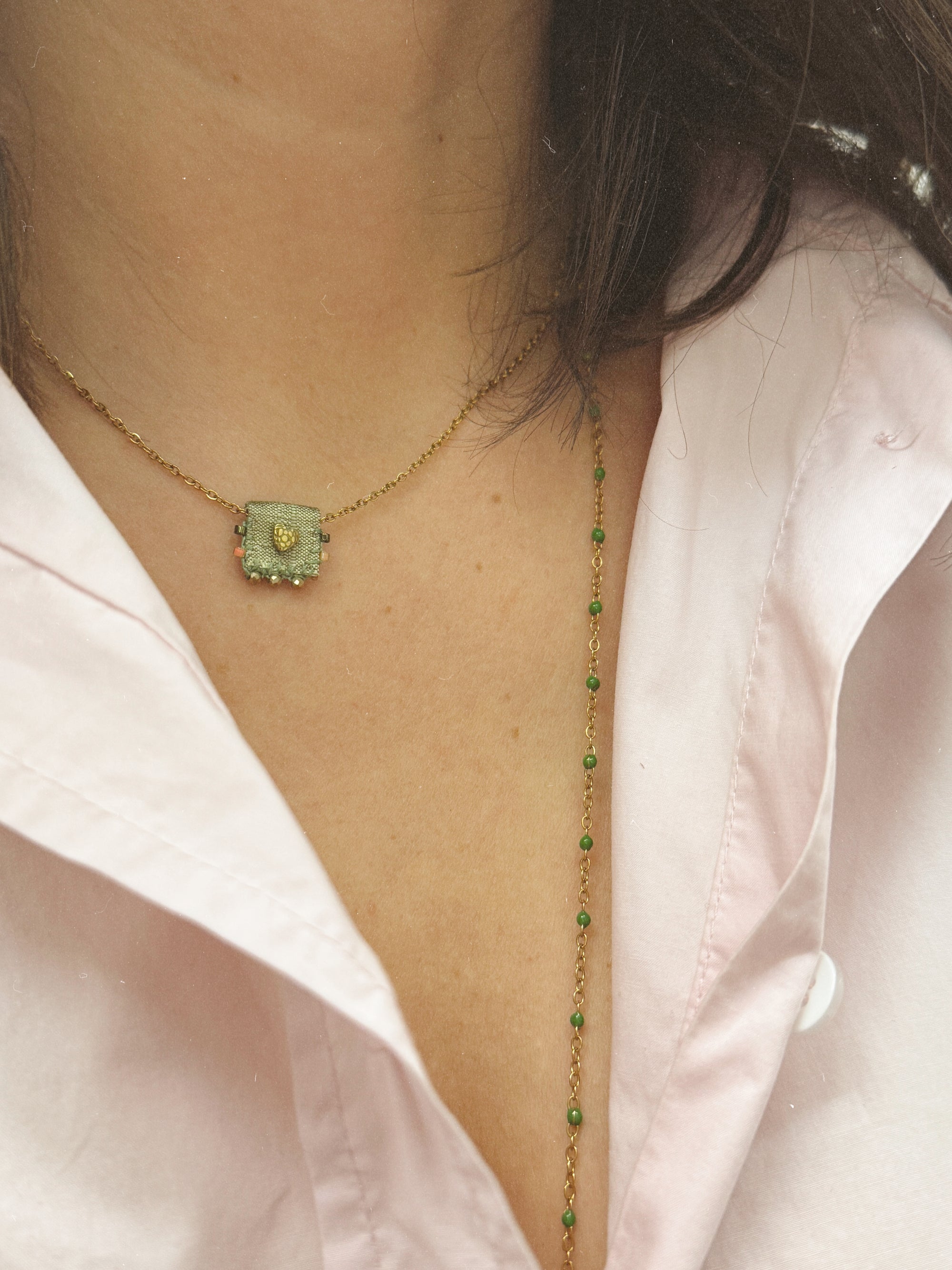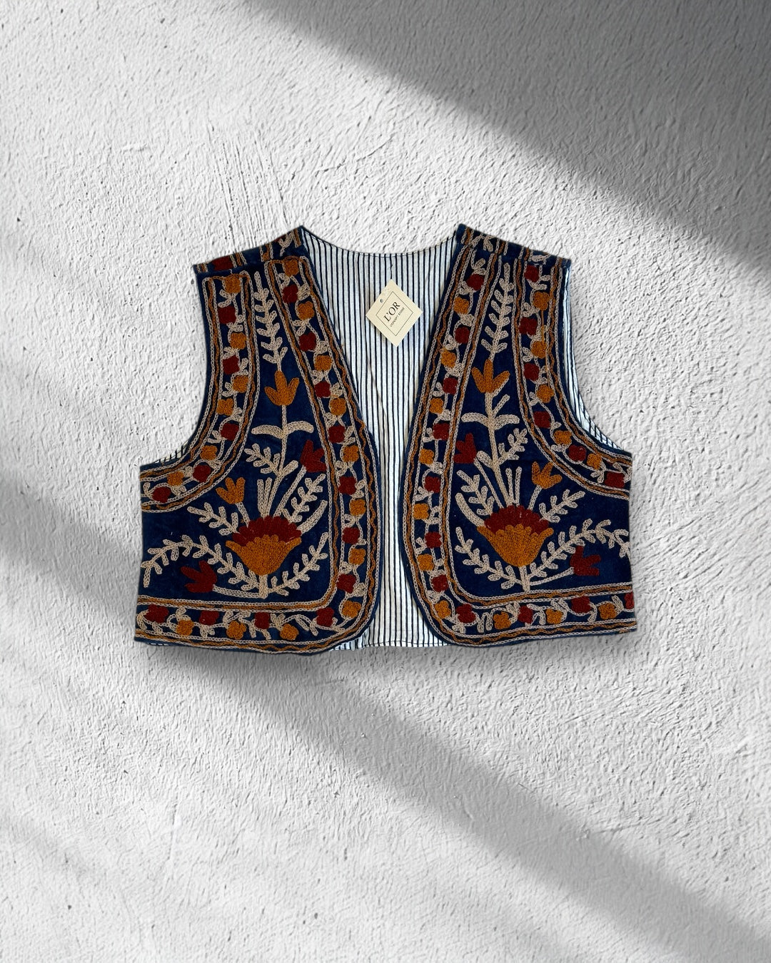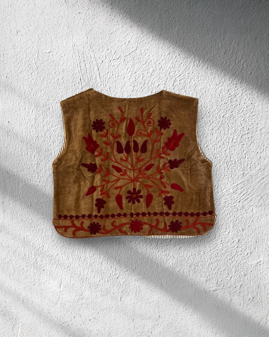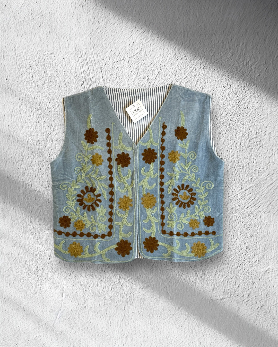 Un accessorio versatile che unisce artigianalità e colore. Queste pochette in velluto, interamente ricamate a mano con motivi floreali e geometrici, sono rifinite da una nappina in filo per un tocco boho-chic.