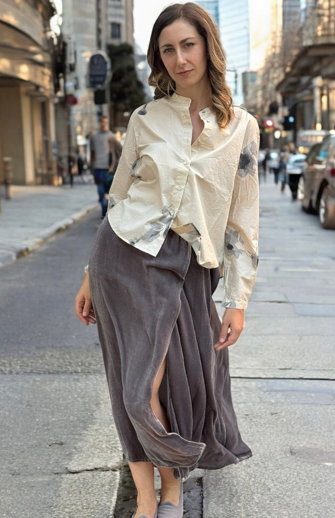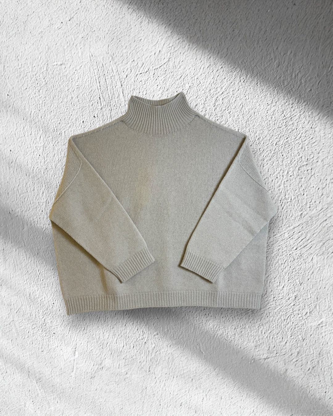 Soffice come una nuvola, essenziale come un gesto spontaneo: questo pullover in misto alpaca è il capo che segna il passaggio di stagione con grazia e intelligenza. La sua maglia leggera, sottile e avvolgente accarezza la pelle senza costringerla, rendendolo il perfetto alleato per quei giorni in cui l’aria cambia ma il ritmo resta veloce. Linee pulite, scollo rotondo, maniche morbide: nulla è lasciato al caso, tutto è pensato per adattarsi a ogni silhouette con naturalezza. Che sia abbinato a un denim dal taglio maschile o a una gonna morbida in seta lavata, il risultato è uno stile effortless che parla di equilibrio e sensibilità. Disponibile in una palette raffinata e polverosa, che esalta i colori di stagione senza cedere agli eccessi, è il maglione che si indossa, si ama e si ricorda. Taglia unica