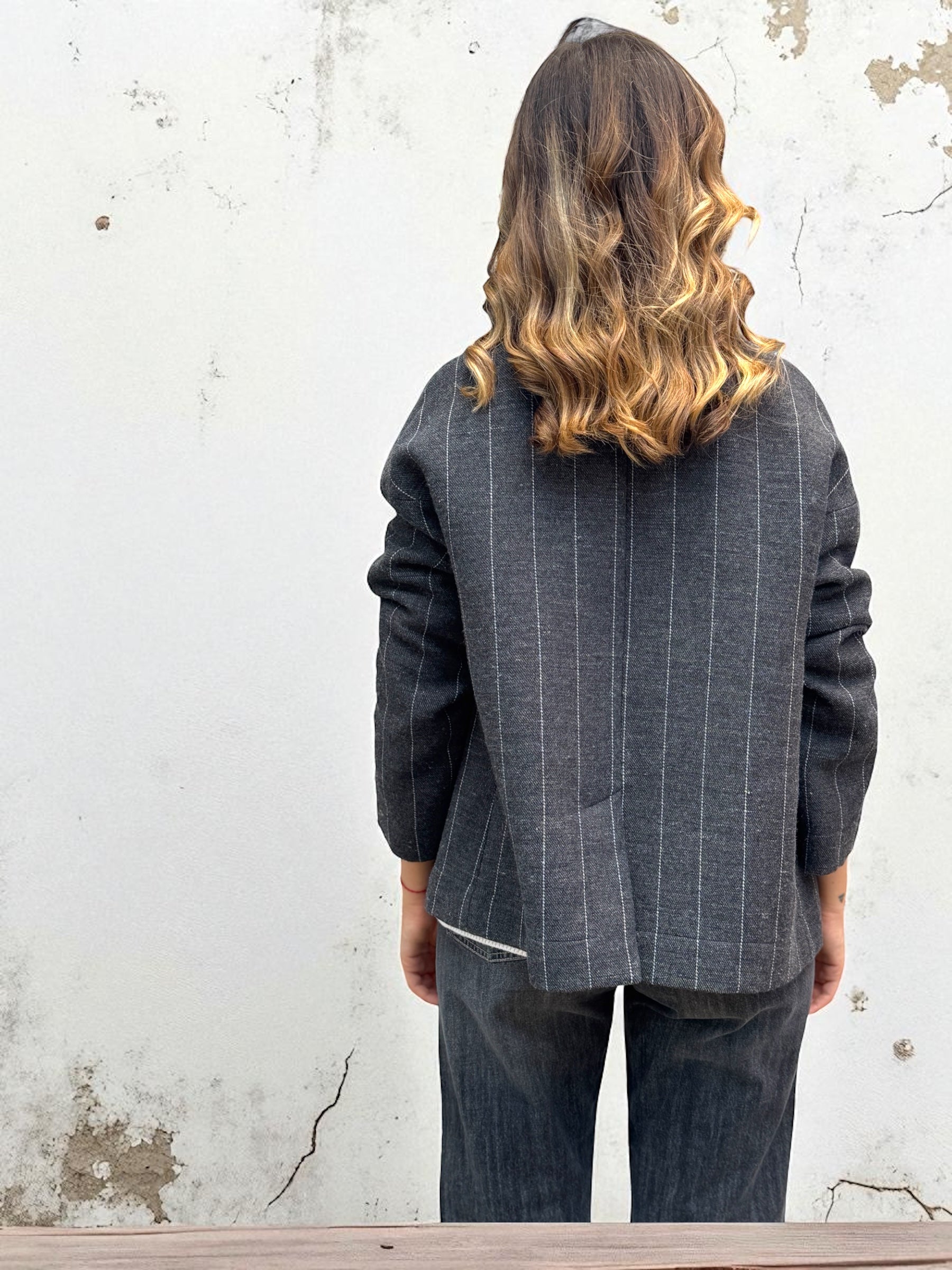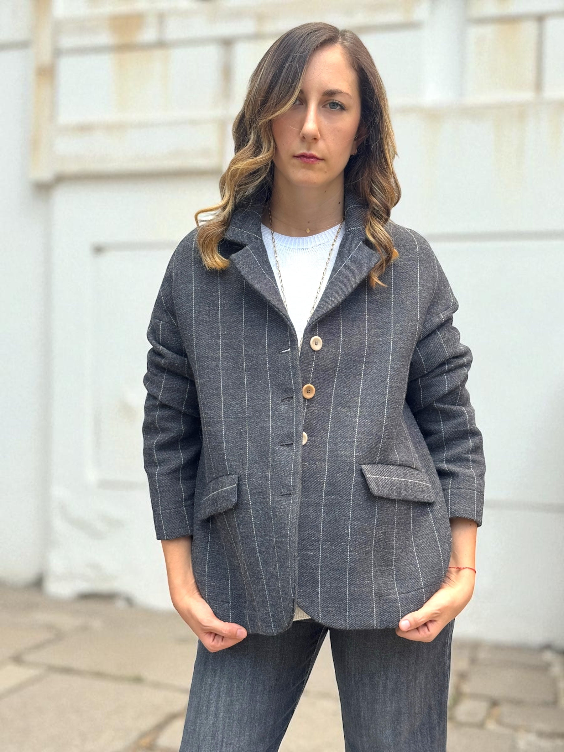 Giacca gessata grigia
